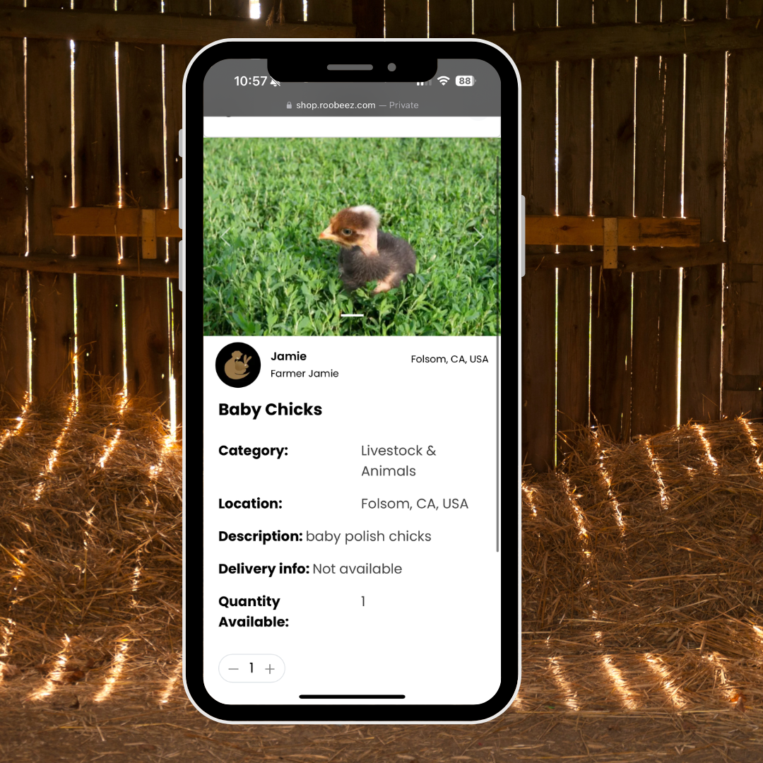 Roobeez is the poultry app and farm software that serves as the ideal nest for showcasing and selling your chickens. Build your own farm website and online storefront for free, flaunt your feathered friends, and let our dedicated marketing team specialize in farm marketing to help your business take flight. Interested buyers on the hunt for where to buy chicks who type in “ live chicks for sale near me” will instantly be connected with breeders registered on Roobeez! Our secure platform is perfect for poultry enthusiasts and sellers alike, crafting a secure connection with chicken breeders nationwide.